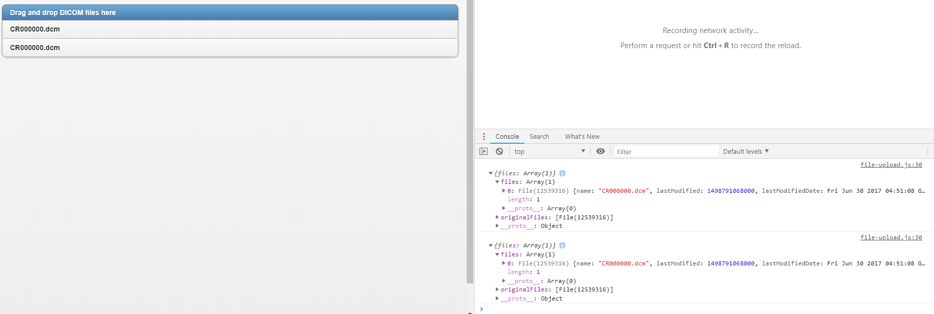 [BitBucket user: Sébastien Jodogne] [BitBucket date: 2015-09-08.12:55:33] Reported by andycrabb, Feb 28, 2015 as issue 28 on Google Code **What steps will reproduce the problem?** 1. Drag and drop files onto 'Upload DICOM files' screen 2. Cancel out of login dialog **What is the expected output? What do you see instead?** All files to be uploaded are listed twice. And you have to cancel out of the 'Authentication Required' dialog box for each file, if you don't successfully log in. **What version of the product are you using? On what operating system?** Orthanc 0.8.6 on Linux (Amazon AMI)